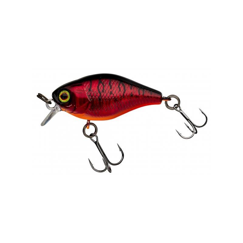 Questa proporzione volumetrica molto abbondante rispetto ai suoi 5cm di lunghezza gli conferiscono un nuoto particolare, con un wobbling molto imitativo. È uno shallow crank che nuota negli strati superficiali dell’acqua fino al massimo di un metro di profondità ed è perfetto per sondare vaste porzioni di lago.